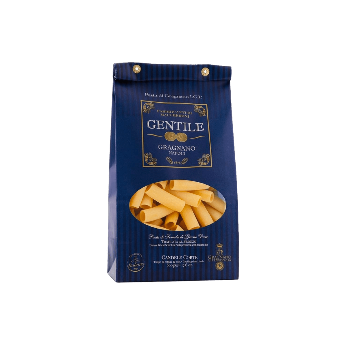 Le Candele Corte del Pastificio Gentile rappresentano uno dei formati più iconici della tradizione campana, nate per celebrare la convivialità e la ricchezza della cucina del Sud. Proposte in confezione da 500 grammi, sono una pasta di semola di grano duro prodotta con la cura e la precisione che distinguono il marchio Gentile, simbolo dell’eccellenza di Gragnano, la storica “Città della Pasta”.