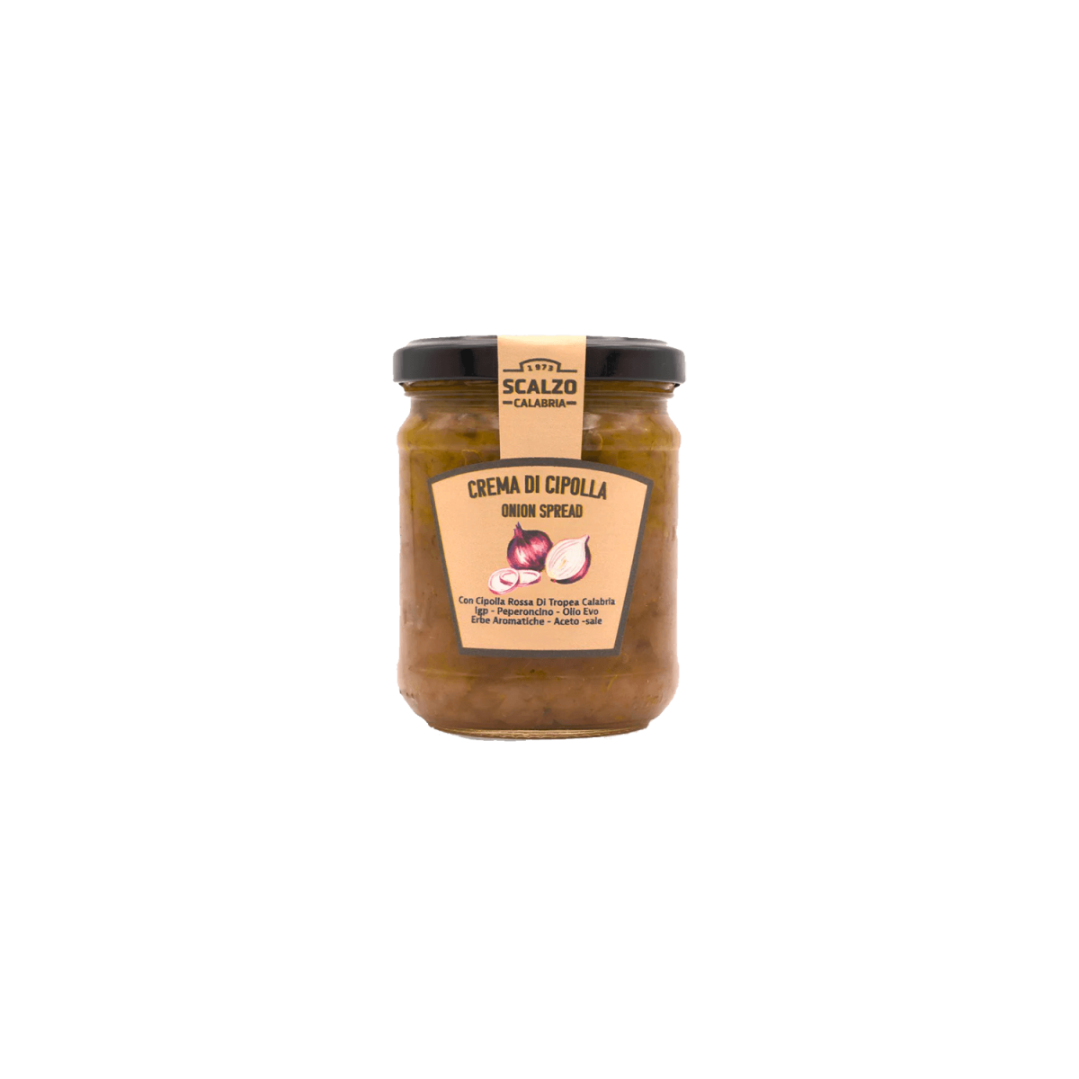 ScalzoLa Crema di Cipolla Rossa di Tropea IGP Scalzo nasce dall’uso dell’80% di cipolle di Tropea lavorate artigianalmente, tritate a grana grossa e cotte lentamente senza conservanti. Il profumo è dolce e avvolgente, con note fresche e un leggero tocco piccante. In bocca è equilibrata, vellutata e ricca di aromi mediterranei grazie all’olio extravergine, all’aceto e alle erbe aromatiche. Perfetta spalmata su crostini, nei panini e con i formaggi, ideale per carni grigliate e deliziosa anche come topping sulla pizza.