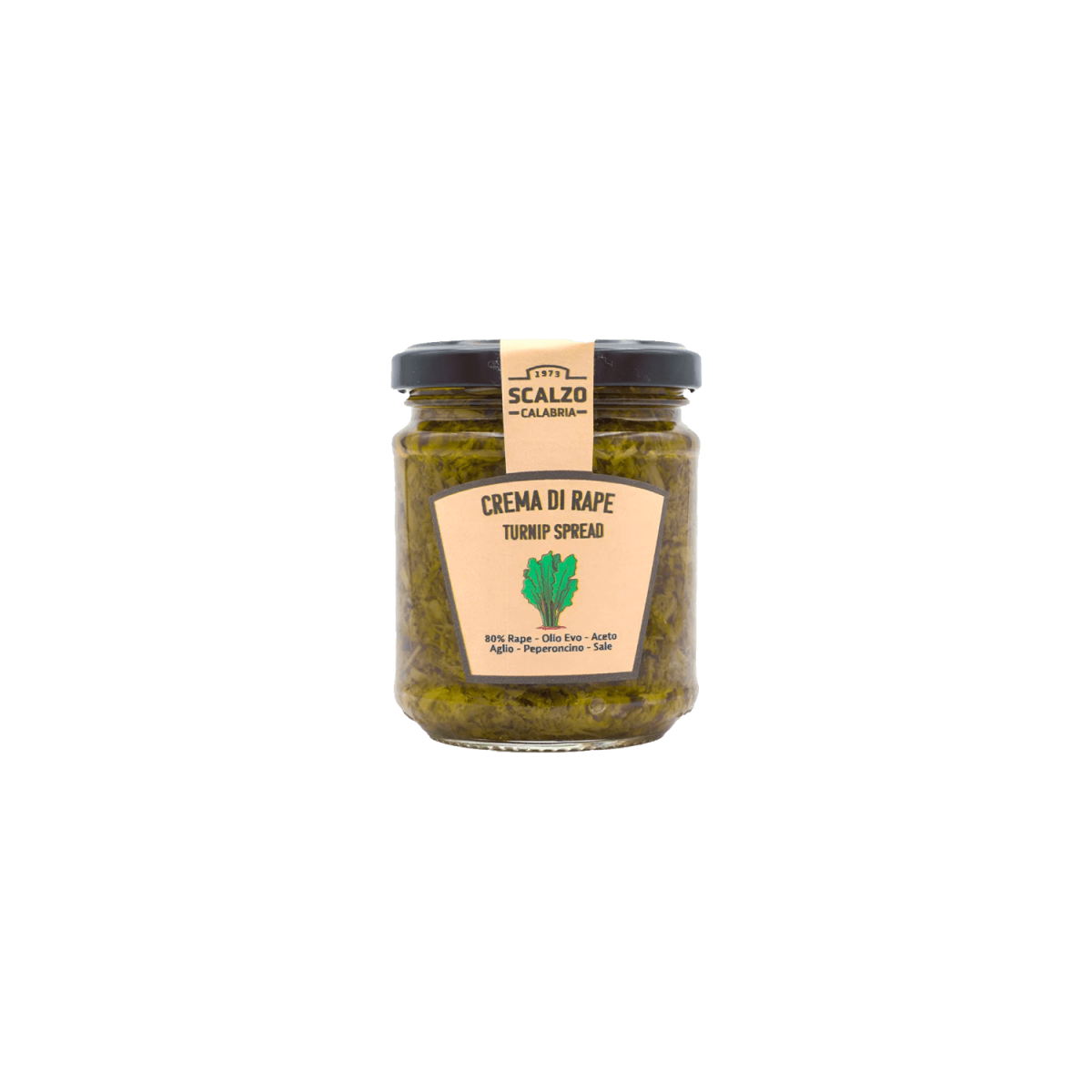 ScalzoLa Crema di Rape Scalzo è una preparazione genuina che esalta il gusto autentico delle rape fresche, presenti all’80%. La consistenza è morbida e vellutata, con profumi vegetali intensi e note leggermente terrose. L’olio extra vergine di oliva dona rotondità, mentre aglio, peperoncino e un tocco di aceto aggiungono profondità, freschezza e una piacevole vivacità aromatica. Senza conservanti chimici, mantiene tutta la naturalezza degli ingredienti. Perfetta da spalmare su crostini, per condire la pasta o accompagnare carni e verdure, porta in tavola la vera essenza della tradizione mediterranea.
