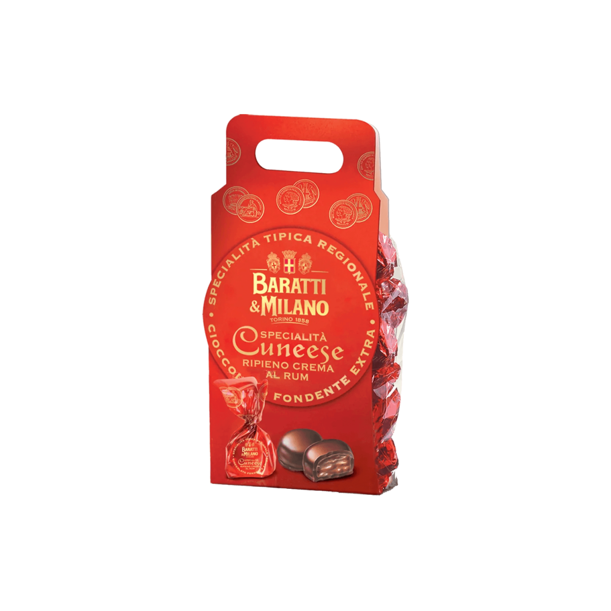 Il Sacchetto Cuneese Rum gr. 135 di Baratti & Milano rappresenta una vera eccellenza della tradizione dolciaria piemontese, frutto della maestria artigianale di una storica azienda fondata nel 1858. Questo prodotto, realizzato con cura e attenzione ai dettagli, incarna l'autentico sapore del Piemonte, regalando un’esperienza sensoriale unica e raffinata.