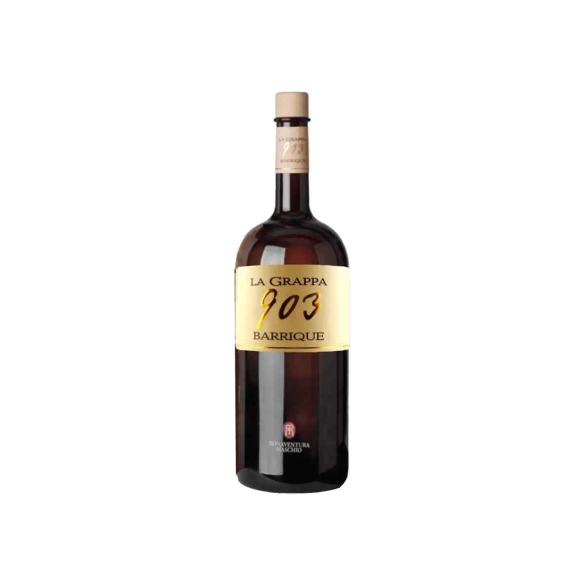 Bonaventura MaschioLa Grappa "903 Barrique" di Bonaventura Maschio è un distillato di eccellenza, dedicato al fondatore Maschio Bonaventura, nato nel 1903. Con un colore ambrato intenso, si presenta al naso con profumi di frutta matura e note speziate dovute all'invecchiamento in barrique di rovere francese. Al palato è corposa ed equilibrata, con una chiusura persistente. Ideale da gustare dopo cena, si abbina perfettamente a formaggi stagionati, cioccolato fondente e dessert di frutta. La grappa è prodotta mediante distillazione in alambicchi di rame, seguendo un processo artigianale, e rappresenta un simbolo del made in Italy, mantenendo viva la tradizione e l'innovazione della famiglia Maschio.