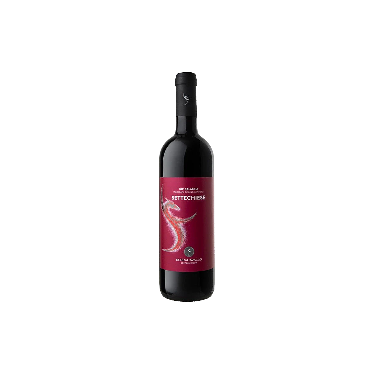 Il Sette Chiese Terre di Cosenza Rosso DOC prodotto da Serracavallo è un vino che racchiude l'essenza dei vitigni autoctoni e internazionali coltivati nel territorio calabrese. Questo vino rappresenta un'espressione autentica del terroir di Bisignano (CS), località situata nel cuore delle colline cosentine, storicamente legata alla produzione vinicola di alta qualità.
