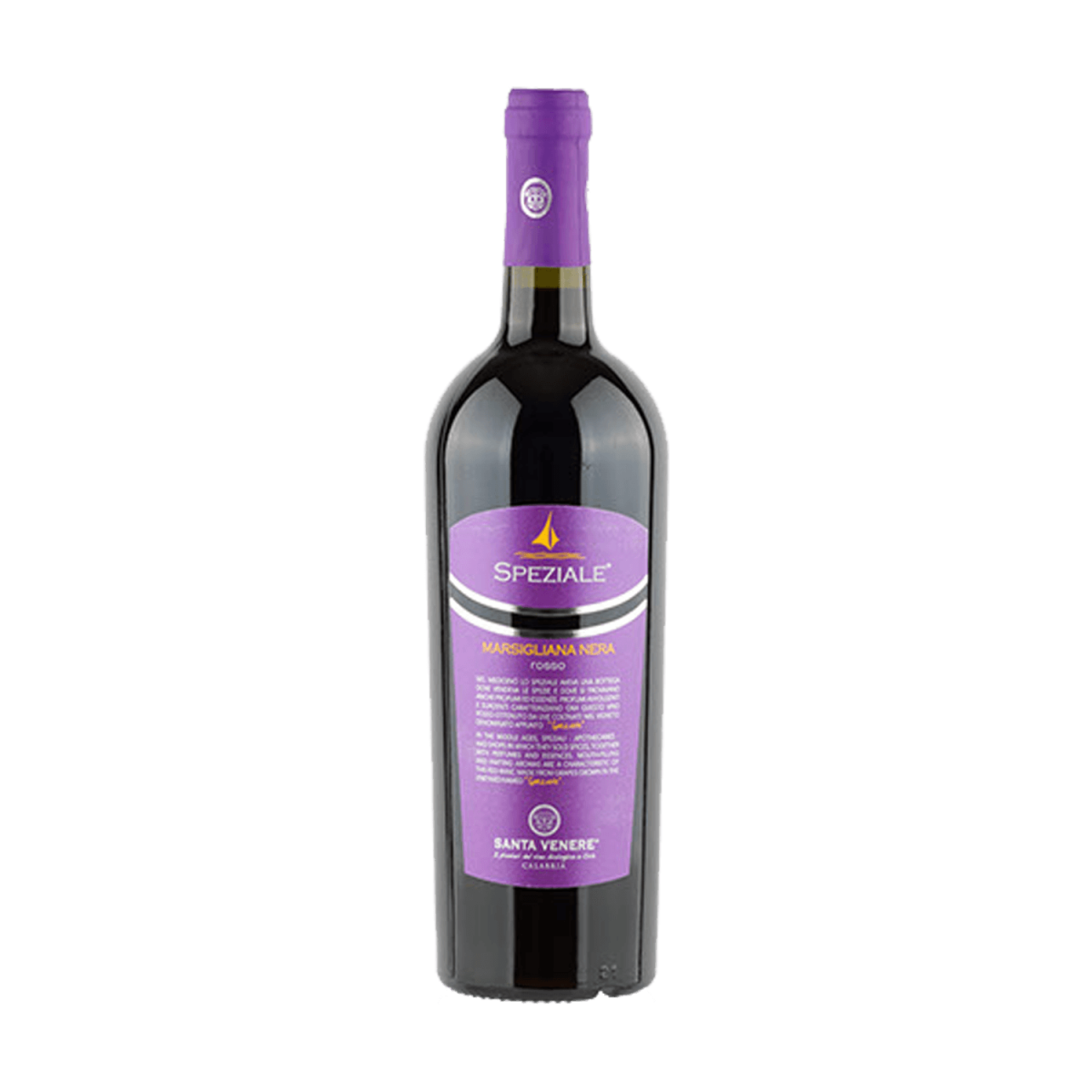 Santa VenereIl Speziale Calabria Rosso IGT di Santa Venere è un vino rosso biologico, secco, prodotto da uve autoctone di marsigliana nera nelle colline di Cirò. Di colore rosso rubino intenso, offre al naso profumi di frutta rossa matura e spezie dolci. Al palato è pieno e avvolgente, con tannini morbidi e un finale persistente. Vinificato in acciaio e affinato per 12 mesi in botti di rovere, è perfetto con salumi, formaggi semistagionati, carni bianche e piatti tipici calabresi. L’azienda Santa Venere, fondata dalla famiglia Scala, segue una coltivazione biologica su 150 ettari.